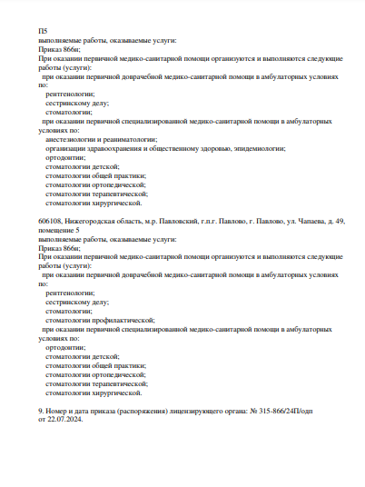 Специализации клиники