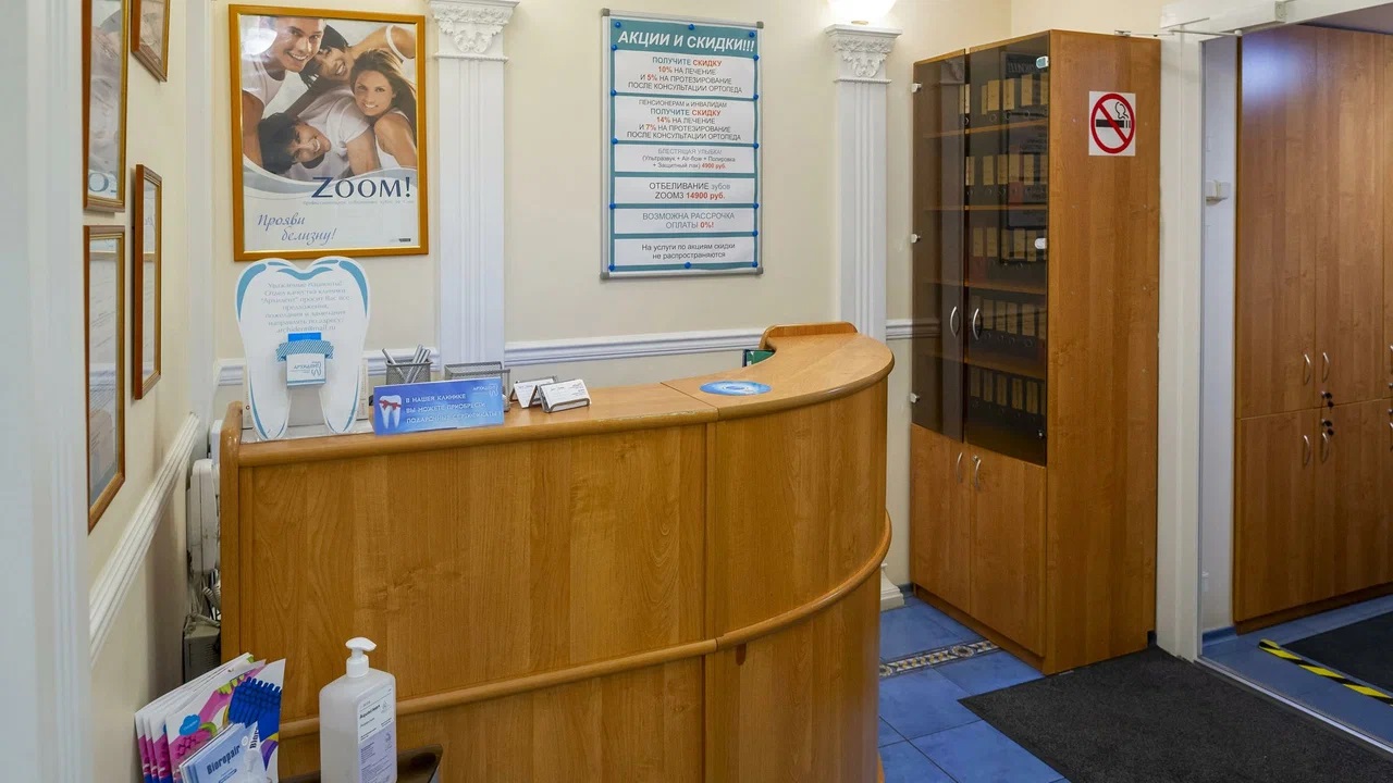 Стоматологическая клиника. Предоставляет услуги имплантации зубов, исправления прикуса, терапевтической стоматологии, пародонтологии, протезирования зубов, эстетической стоматологии. Клиника находится в 5 минутах от станции м. Цветной бульвар.