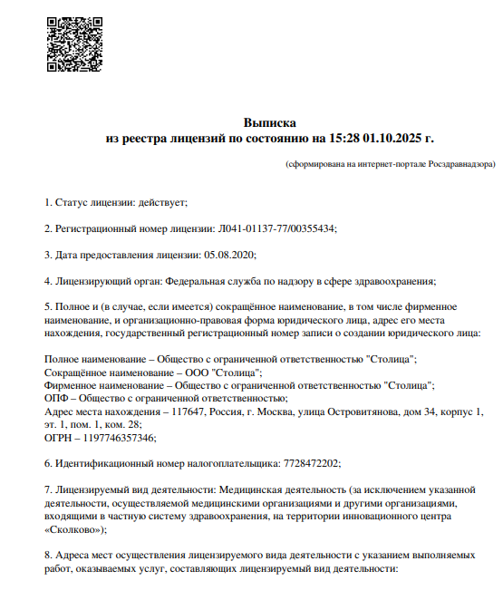 Стоимость приема - Руб