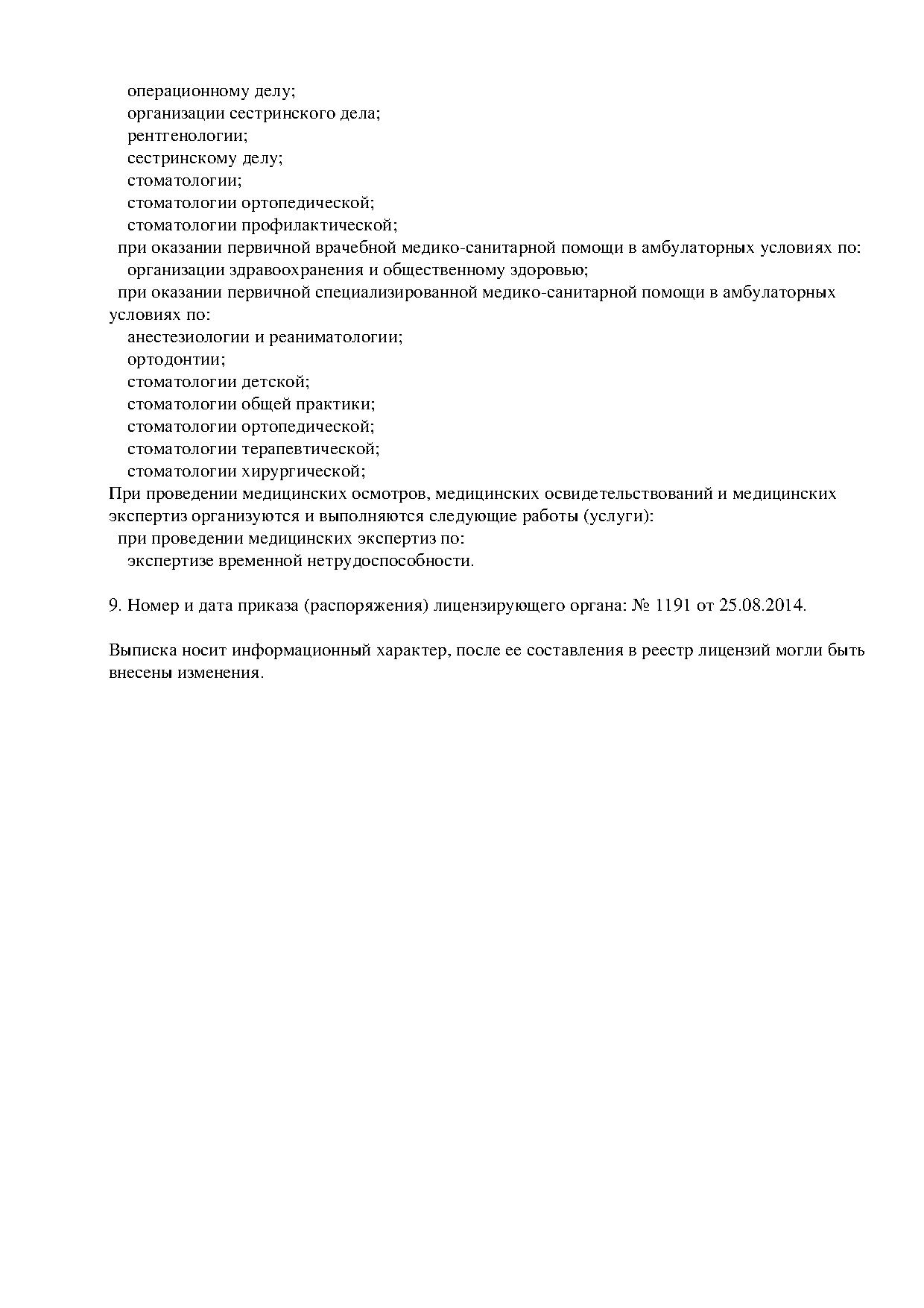 Специализируется на диагностике, профилактике и лечении таких заболеваний зубов, как дефекты твердых тканей, кариес, периодонтит, пульпит и др. Занимается установкой зубных коронок, зубных мостов, съемных и несъемных протезов, виниров.