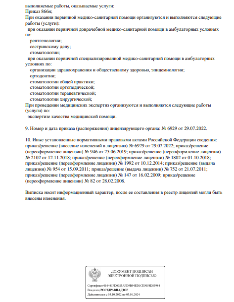 Стоматологическая клиника предоставляет услуги по стоматологии, включая терапию, ортопедию, ортодонтию, хирургию, имплантацию. Прием проводится по предварительной записи.