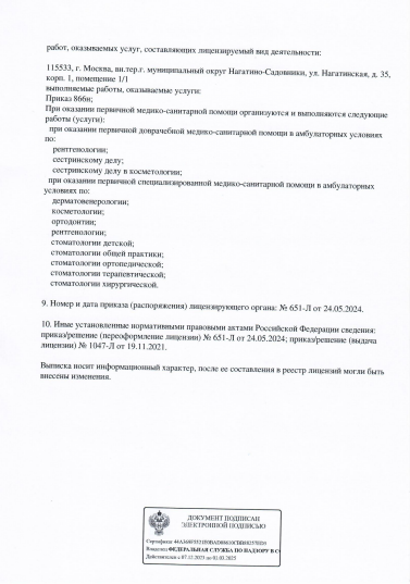 Стоматологическая клиника предоставляет услуги по стоматологии, включая терапию, ортопедию, ортодонтию, хирургию, имплантацию. Прием проводится по предварительной записи.