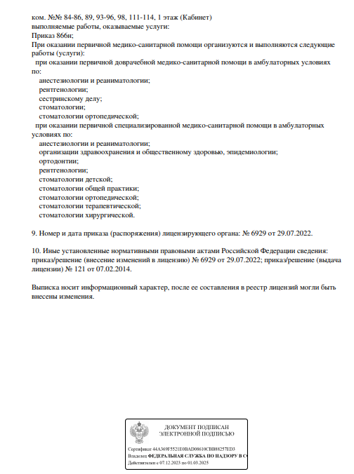 Стоматологическая клиника. Предлагает услуги: лечение, удаление, отбеливание зубов системой ZOOM, детский прием, имплантация зубов, пародонтология, исправление прикуса (эдайнеры, брекеты), ортопедия (коронки и виниры), гнатология (лечение ВНЧС), лечение в наркозе и с применением закись азота-кислородной седации. Прием проводится по предварительной записи.