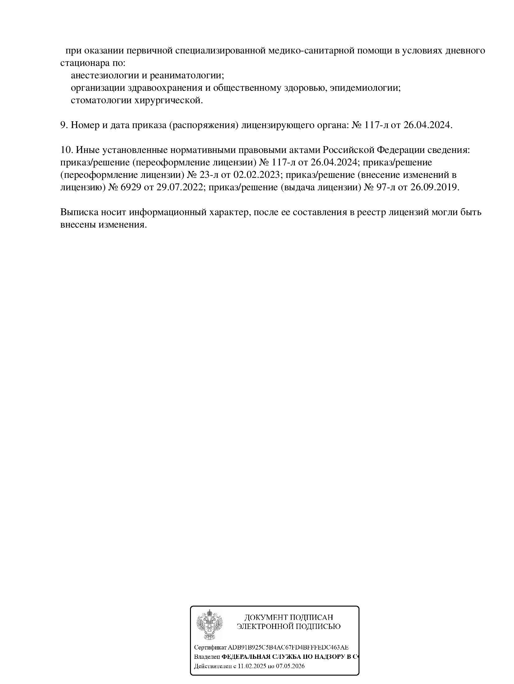 Проводит удаление зубов любой сложности, амбулаторные операции, направленные на сохранение зубов, хирургическое лечение заболеваний пародонта, лечение воспалительных заболеваний челюстно-лицевой области. Занимается восстановлением зубного ряда при отсутствии всех или некоторых зубов с использованием имплантологических материалов и оборудования и с применением различных методик имплантации.