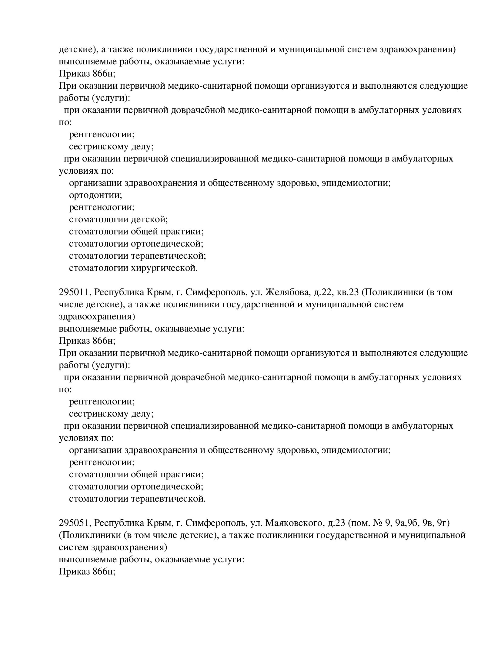 Многопрофильный медицинский центр TF Clinic имеет лицензии на все виды стоматологических услуг (включая терапию, ортопедию, ортодонтию, хирургию, имплантацию и др.), направления общей медицины - УЗ-диагностика, неврология, кардиология, гинекология, эндокринология, гематология.