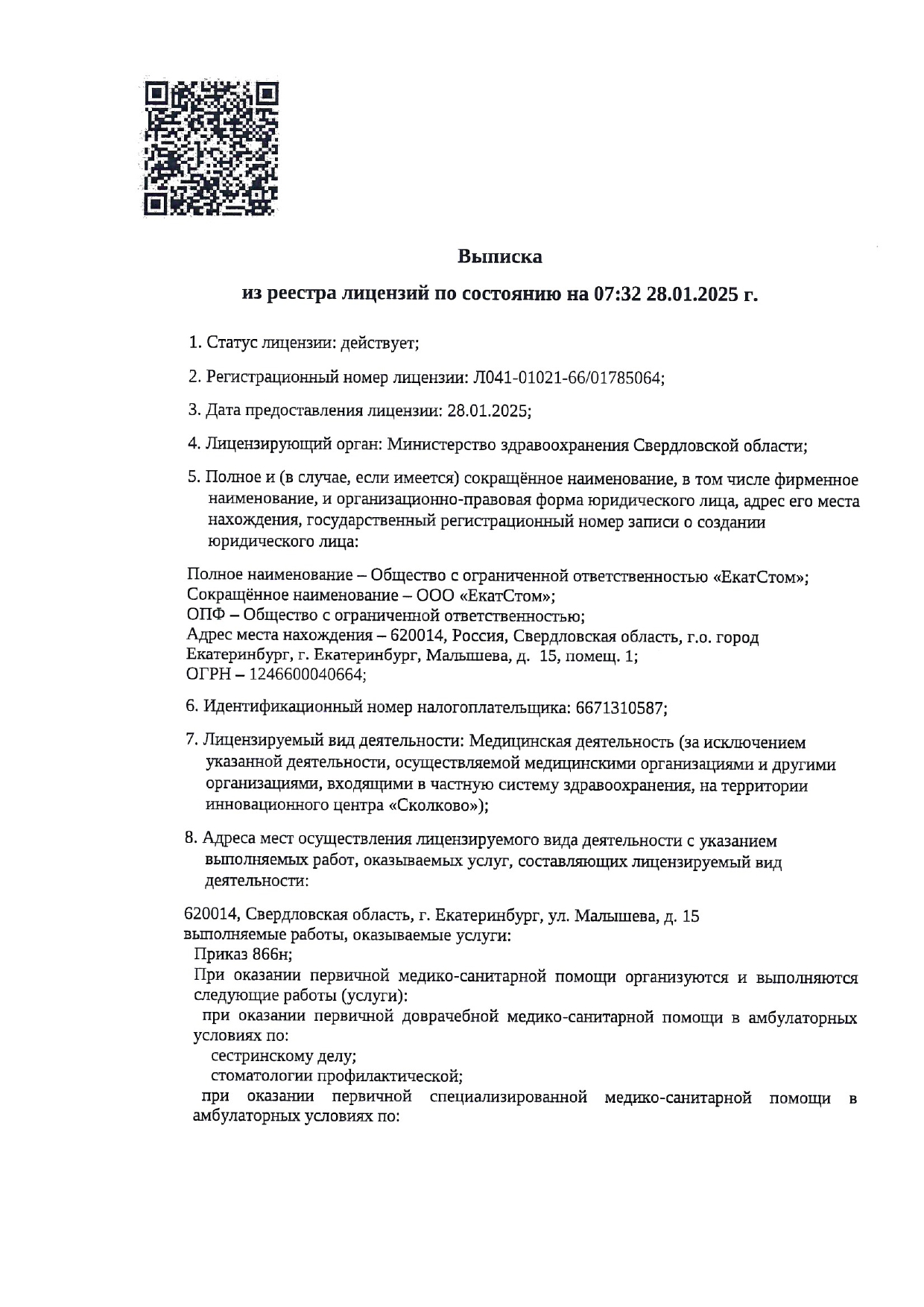 • Адрес Екатеринбург, Малышева, д.15