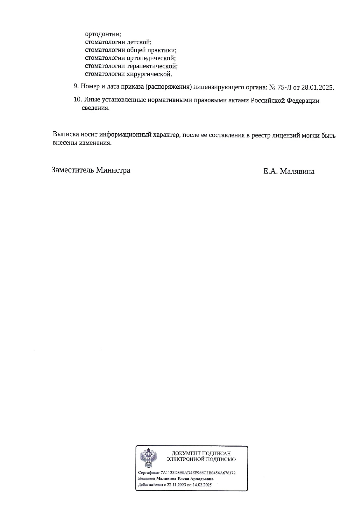 Специализации клиники
