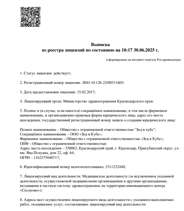 Стоимость приема - 500 Руб