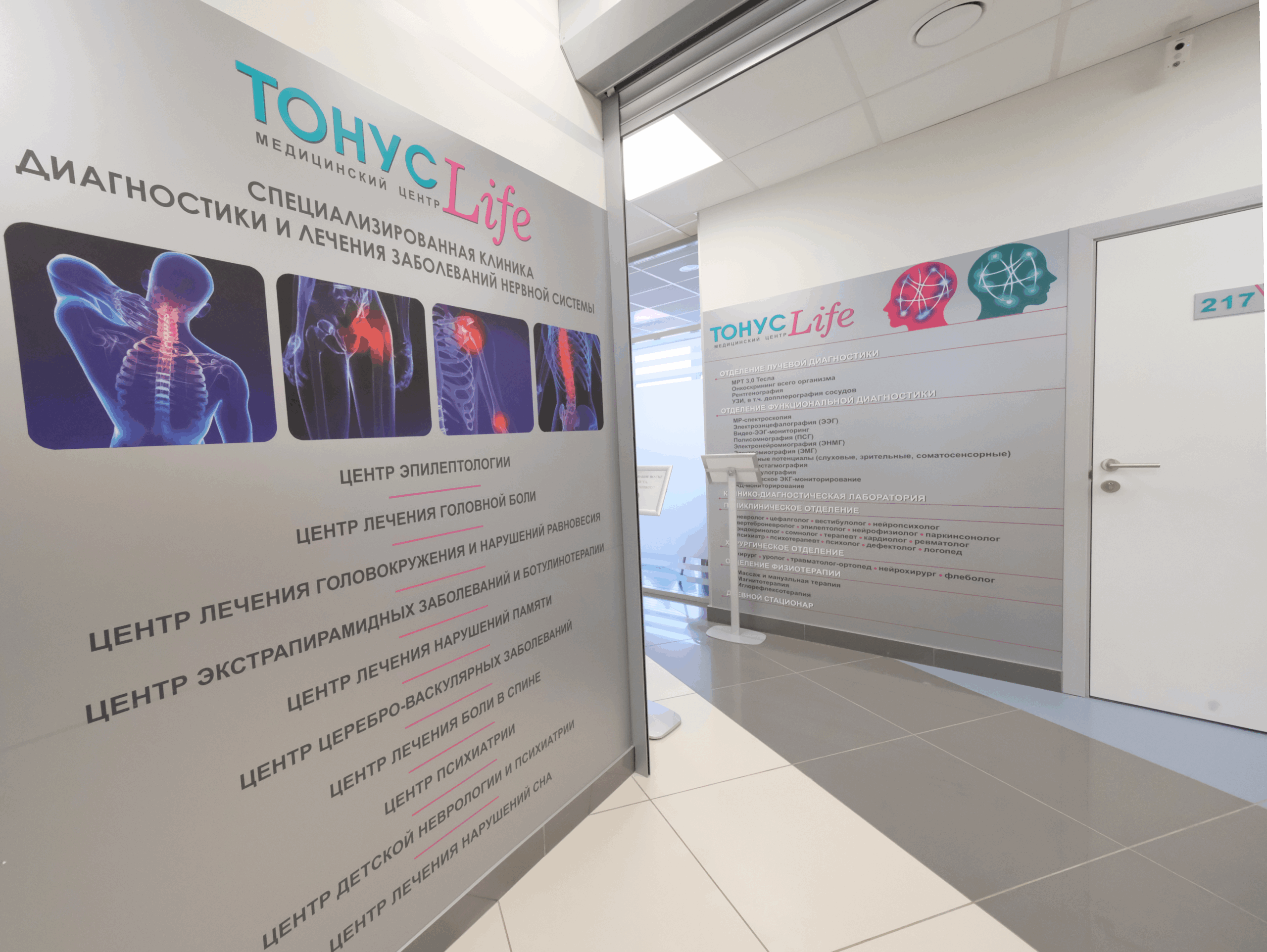 Медицинский центр. В клинике проводят исследования в области нейровизуализации, ультразвуковой диагностики, нейрофизиологии. Клиника оснащена инновационным оборудованием ведущих мировых производителей.