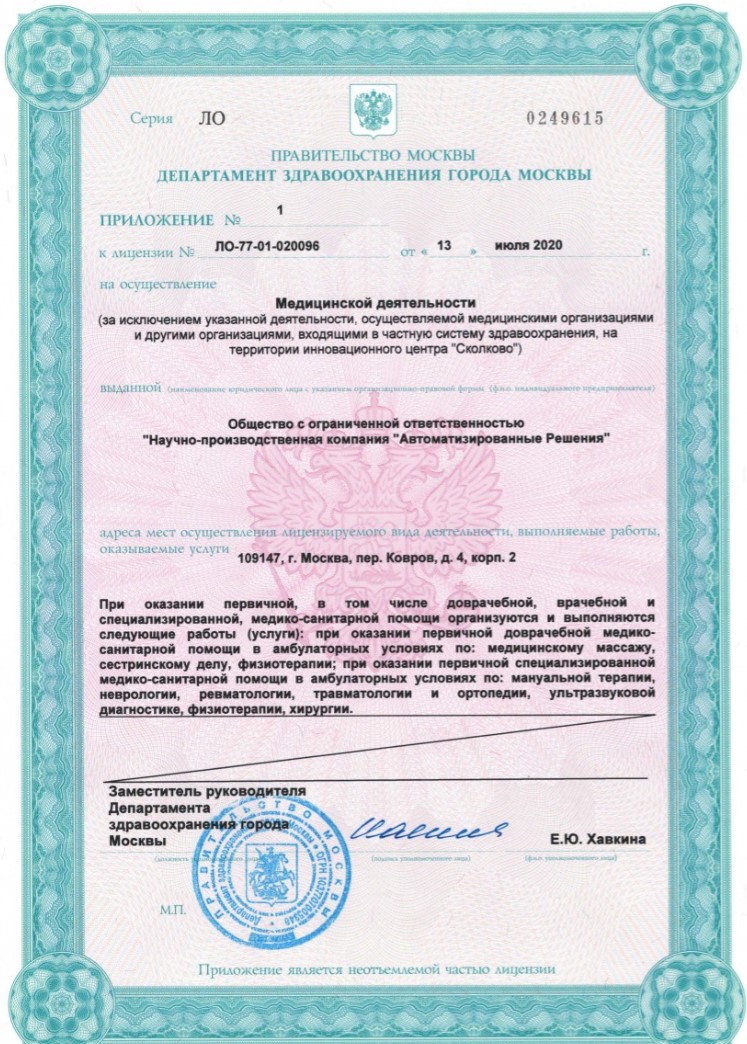 Центр терапии боли. Клиника делает упор на восстановительные методы лечения в травматологии, неврологии, ревматологии, урологии. В клинике собран арсенал методик и подходов к лечению острой и хронической боли и связанных с болью мышечно-тонических синдромов, различных дисфункциональных проявлений. Прием ведут ортопеды-травматологи, неврологи, физиотерапевт, массажисты. Прием проводится по предварительной записи.