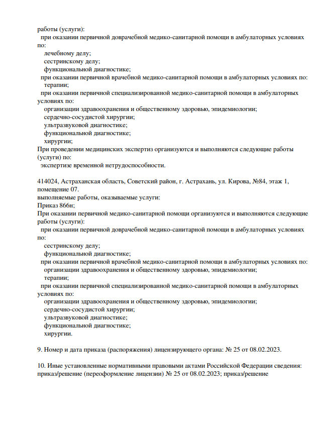 Специализации клиники