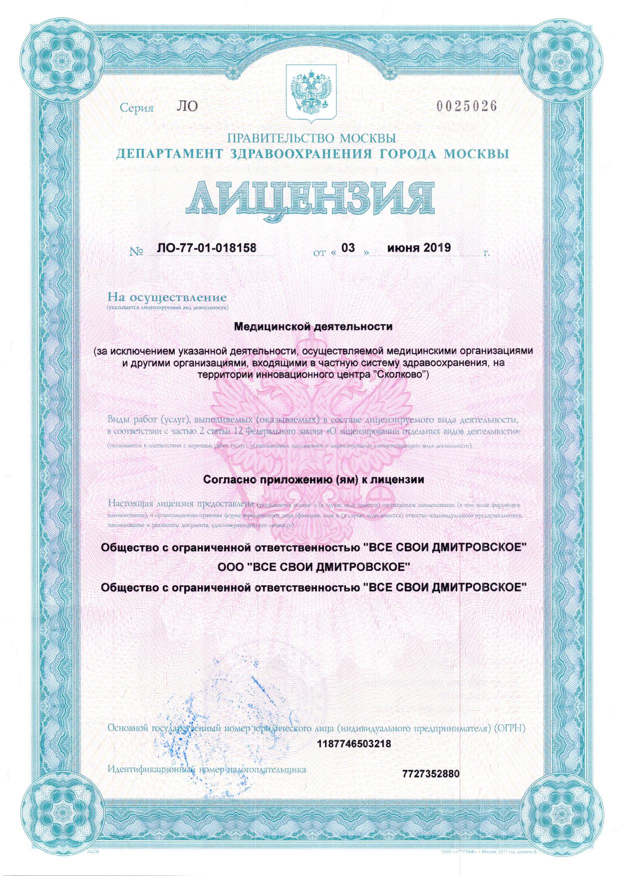 Стоимость приема - 0 Руб